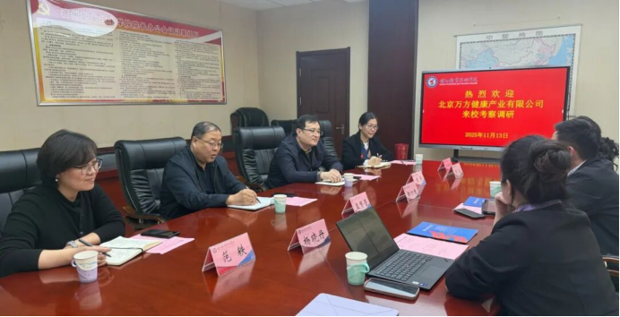 11月13日,北京万方健康产业有限公司董事长鄢红根、总经理杨晓丹一行来beat365官网考察交流。校党委副书记、院长孟繁营,校党委委员、党政办公室主任、宣传部部长朱弘出席座谈会,beat365英国官网网站相关负责人参加会议。