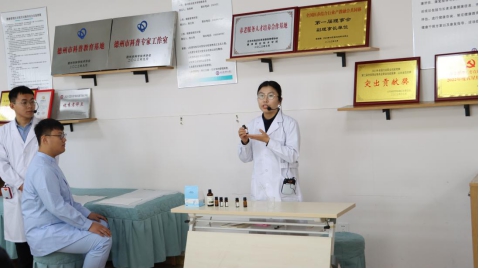 其次康复治疗技术专业陈震、王建红老师现场演示保健按摩、芳香保健项目。
