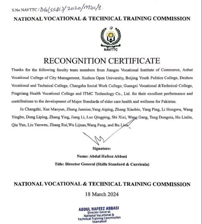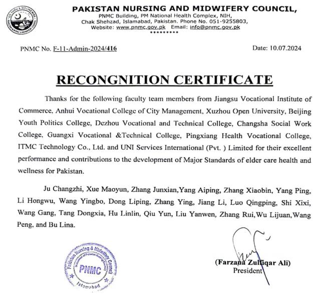 巴基斯坦老年照护专业标准国家职教委认证