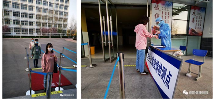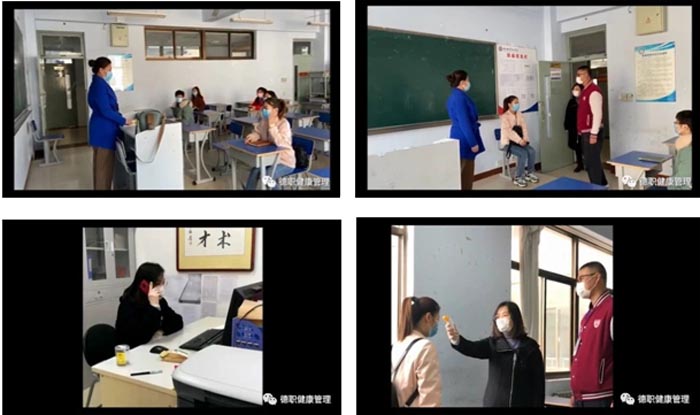 在博学楼B座教室的演练由教师饰演学生,模拟上课时学生突发发热症状,由老师对该生进行隔离上报处理以及该班级的消毒处理。在公寓楼的演练由教师饰演学生,模拟进行开学登记进入学生公寓楼。所有参演人员按照既定预案,迅速行动,密切配合,有条不紊,准确高效地完成了突发新冠肺炎应急处置演练任务。