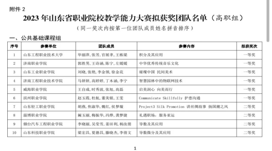 近日,由山东省教育厅主办的2023年山东省职业院校教学能力大赛拟获奖团队名单公布,吴双、王倩、王霄琳、吕志伟老师的参赛作品《坠床的预防与照护》获山东省职业院校教学能力大赛(高职组)专业课程二组三等奖,本次大赛是对学院教师教学能力的实战检验,同时彰显了beat365官网年轻教师的精神风貌。