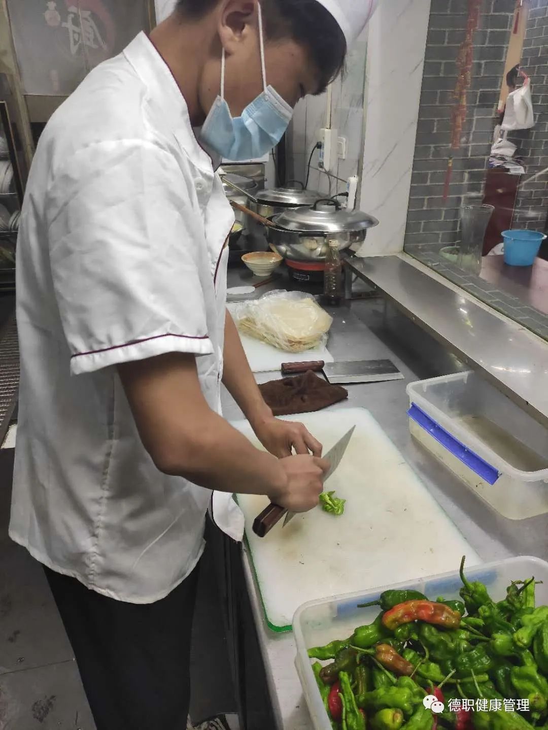 在厨房工作,必须服从厨师长和领班的管理。进入厨房必须按规定着装,佩戴工作帽,保持仪表、仪容整洁,洗手后上岗工作。现在我担任的是厨房的案子,每天的工作就是,切菜,配菜,上灶台。豆制品提前泡水,切好的菜品,必须严格要求,保证菜品的新鲜,生熟食品的分开放置,封保鲜膜。配菜也讲究技巧,先炒什么菜,后炒什么菜,每天晚上仔细核对菜单,需要购买什么菜品,大概需要买多少,清理灶台,做好厨房卫生,喷洒酒精消毒,两天清理一次油烟机。